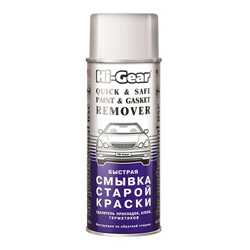 Средство Hi-Gear Quick & Safe Paint & Gasket Remover HG5782 позиционируется как быстрая смывка старой краски. Вместе с этим в инструкции на упаковке указывается, что с его помощью можно удалить старые присохшие прокладки, клей, герметики. Реализуется в виде аэрозоля, поэтому пользоваться им удобно. Однако отмечается, что зачастую одного нанесения для растворения краски бывает недостаточно, соответственно, через 5…10 минут приходится наносить еще один слой удалителя краски «Хай-Гир». Учитывая его относительно дорогую цену, это приводит к перерасходу.